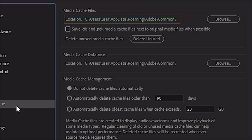 This media cache database is shared with adobe media encoder after effects premiere pro encore and.