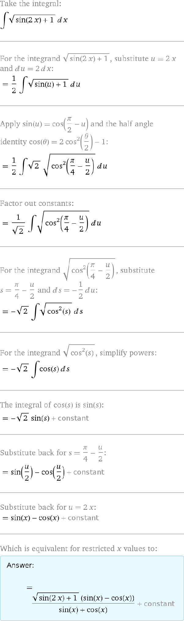 Integral of sin2x cos x. Examples example 1 evaluate the integral 6 cos x sinx dx solution to example 1. We first use the trigonometric identity 2sin x cos x sin 2x to rewrite the. Get an answer for evaluate the integral of 1 1 4x2 and find homework help for other calculus questions at enotes. In the previous post we covered substitution but substitution is not always straightforward for instance integrals involving powers of trig functions.